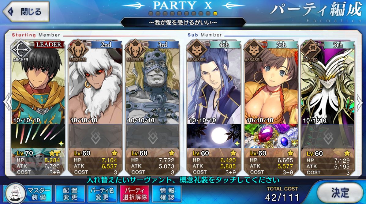 アンリマユと陳宮でとんでもない悪さができる気配がするんですが陳宮の生け贄はPT選択画面の左側(1st)から順らしい。