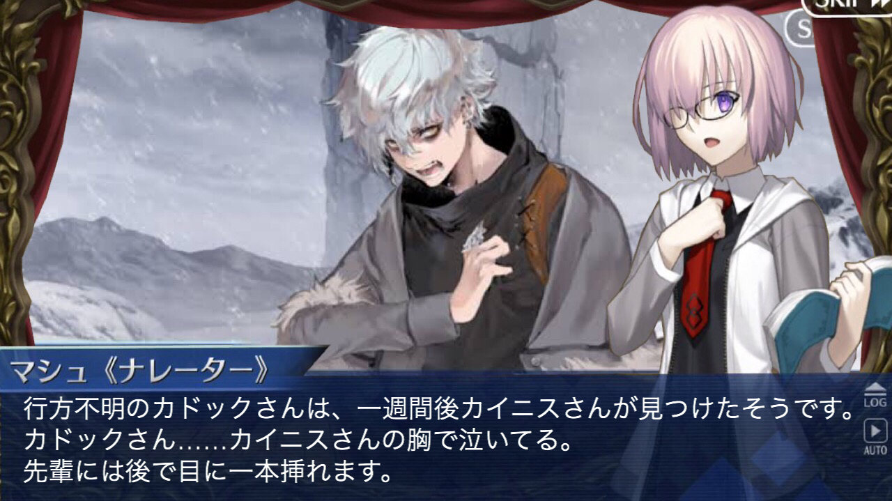 新しく買ったバッシュを踏むようなものじゃろ(適当)どこかの異聞帯で直接顔を合わすことはないけど、あの人物に会った存在がまた出てかて、音の正体が具体的に分かり、そこからカルデアを名乗る者の正体を掴む大きなヒントなったら興奮する
