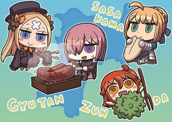 アビーが焼いてるのとマシュの微妙な表情を見てると本当にタンなのか、というか牛なのか疑いたくなってくるな……牛タン美味いよね、個人的には塩胡椒派です