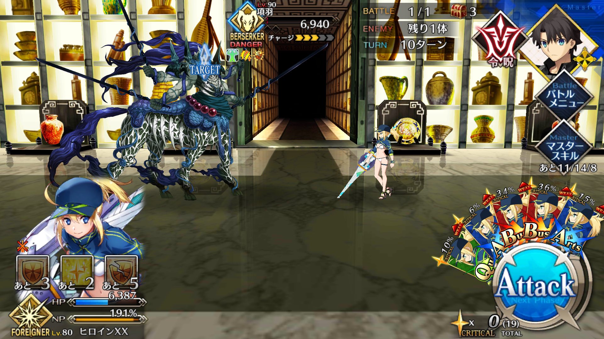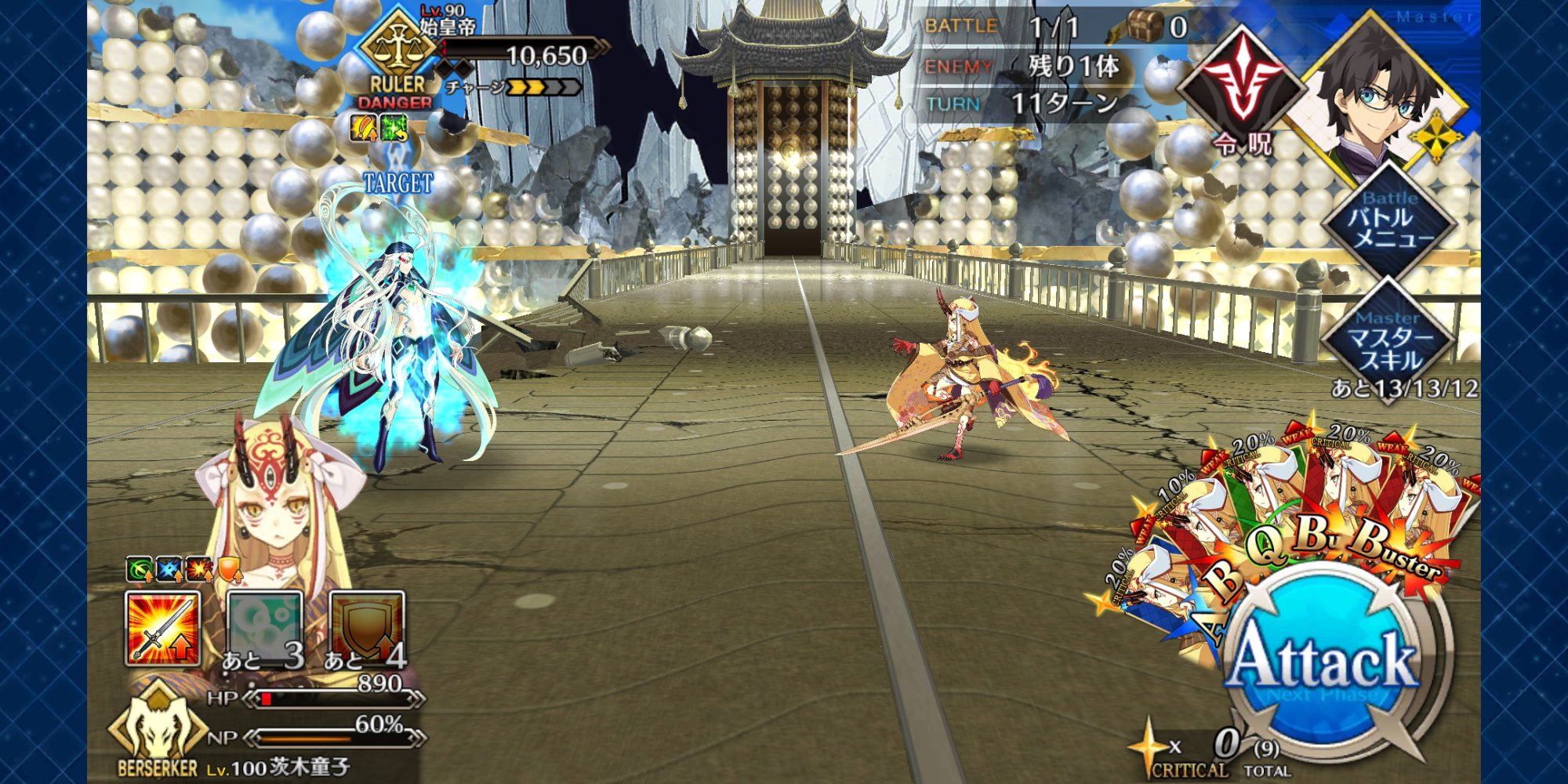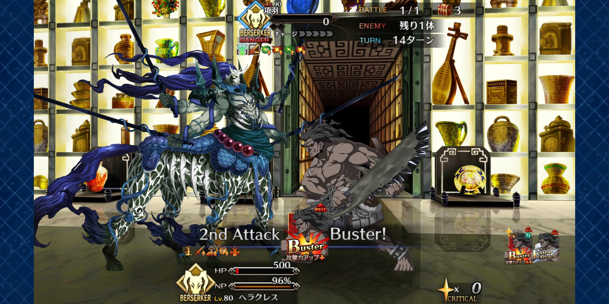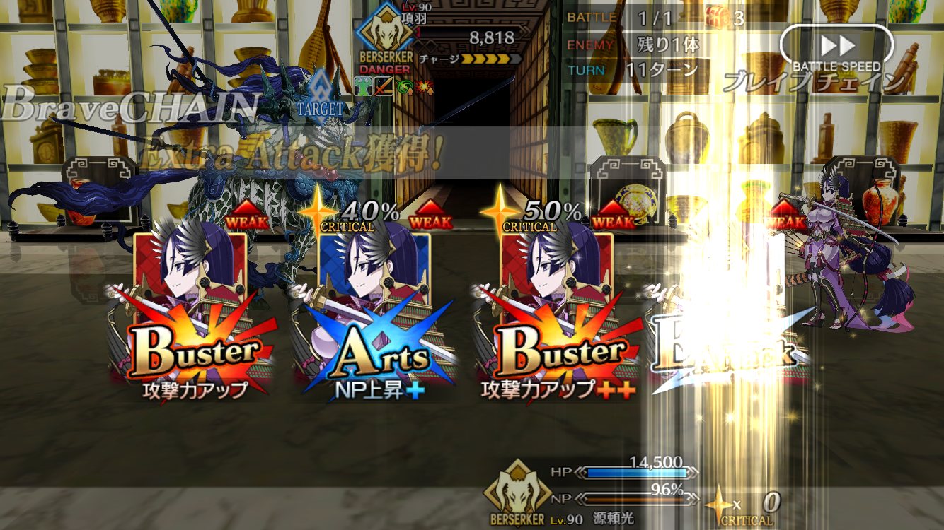 (引けず爆死した)始皇帝のゲージをあまりに早く割りすぎると宝具連続発動でバフがヤバい量になるな