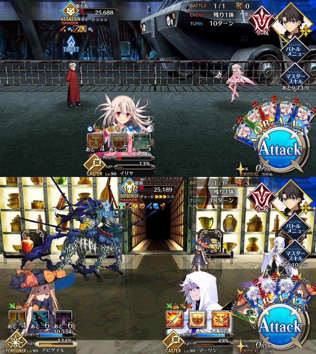 ぐえー!とにかく項羽に残す防御相性変更がきっついから、虞美人は出来るなら全体で項羽を巻き込みつつの2パン撃破が理想よな