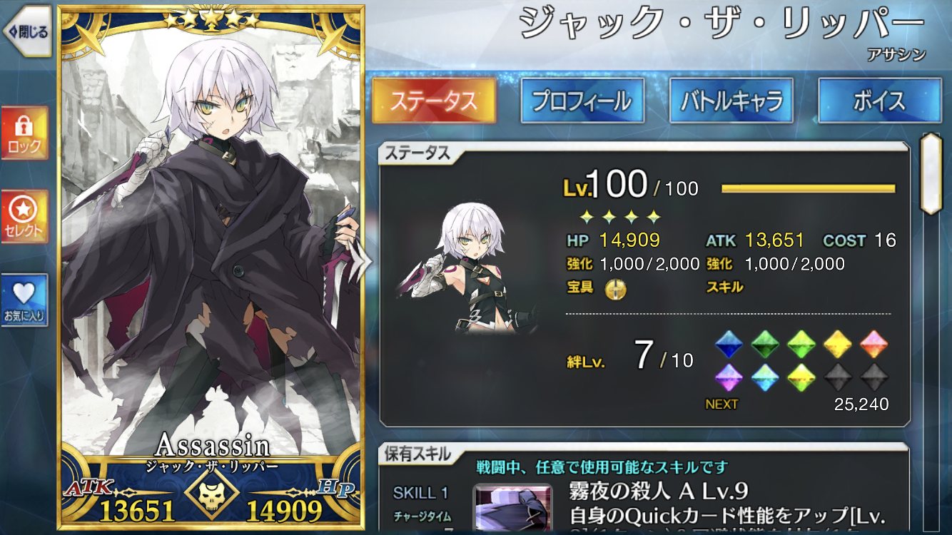 というか攻撃宝具じゃないザバーニーヤそこそこあるっぽいんだけど自分ちのジャックちゃんは10/7/10です