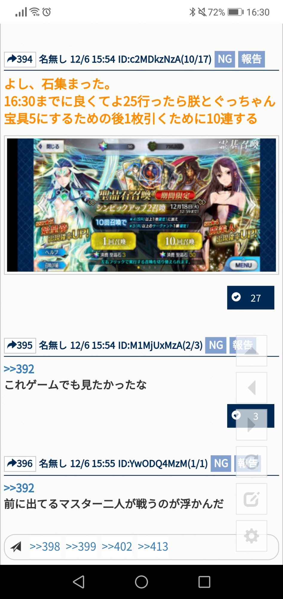 ネタバレ、最終再臨バレに関する話題で書き込むのが躊躇われる場合は下のスレへ。