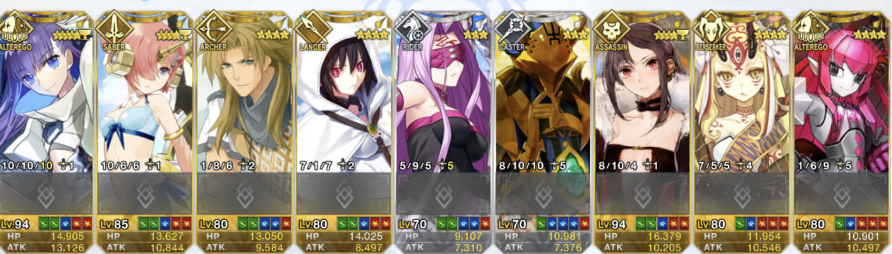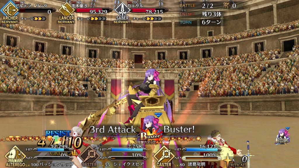 他にも味方全体に40%のクリティカルバフを渡せるアンデルセン。攻撃と宝具両方の威力を上げられる「嵐の航海者」を持つ黒ひげやレジスタンスのライダー。ガッツ付きバスターバフと宝具で味方の火力を上げられるロムルス。さらに最高ランクのカリスマA+持ちの子ギルに全てのスキルが味方への攻撃バフなカエサルなどなど低レアにも強力な火力上げ要員は大勢いるわ