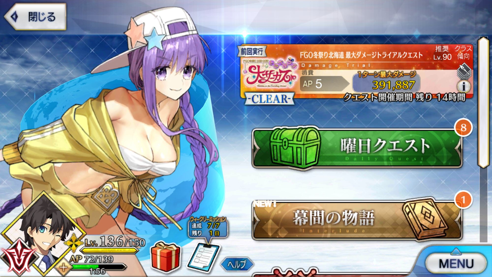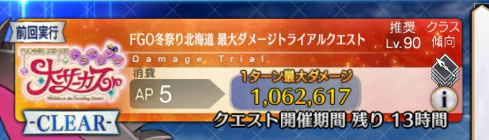 現在、ダメージトライアルが開催されてるわね!当然最強は項羽様だけども他のサーヴァントを使って普段見られないような浪漫的ダメージにチャレンジしてみるのも悪くないわ