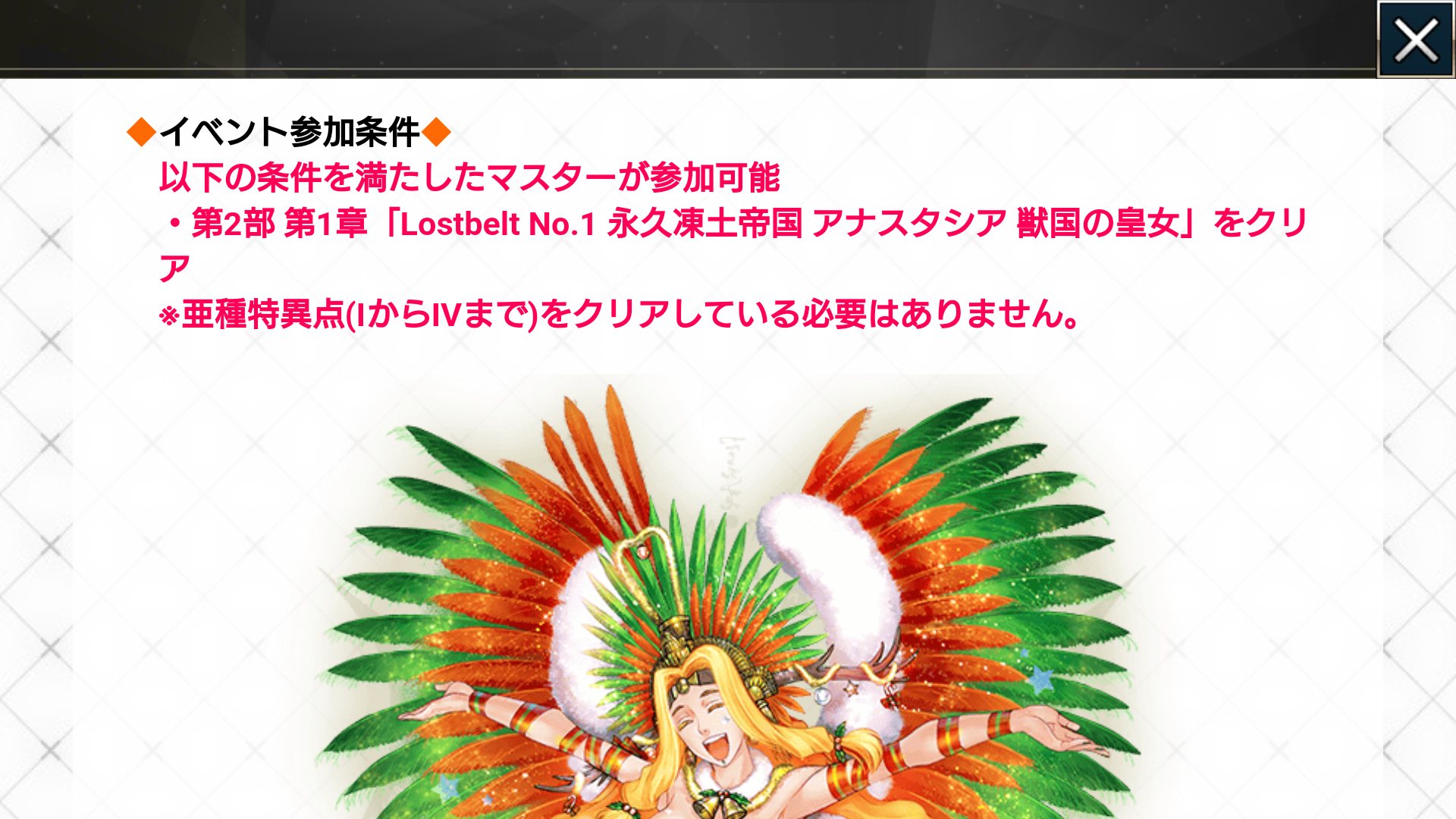 最終再臨や霊衣解放のイラスト、最新シナリオ内の画像や話題などは配信、実装から2週間は控えてください。
