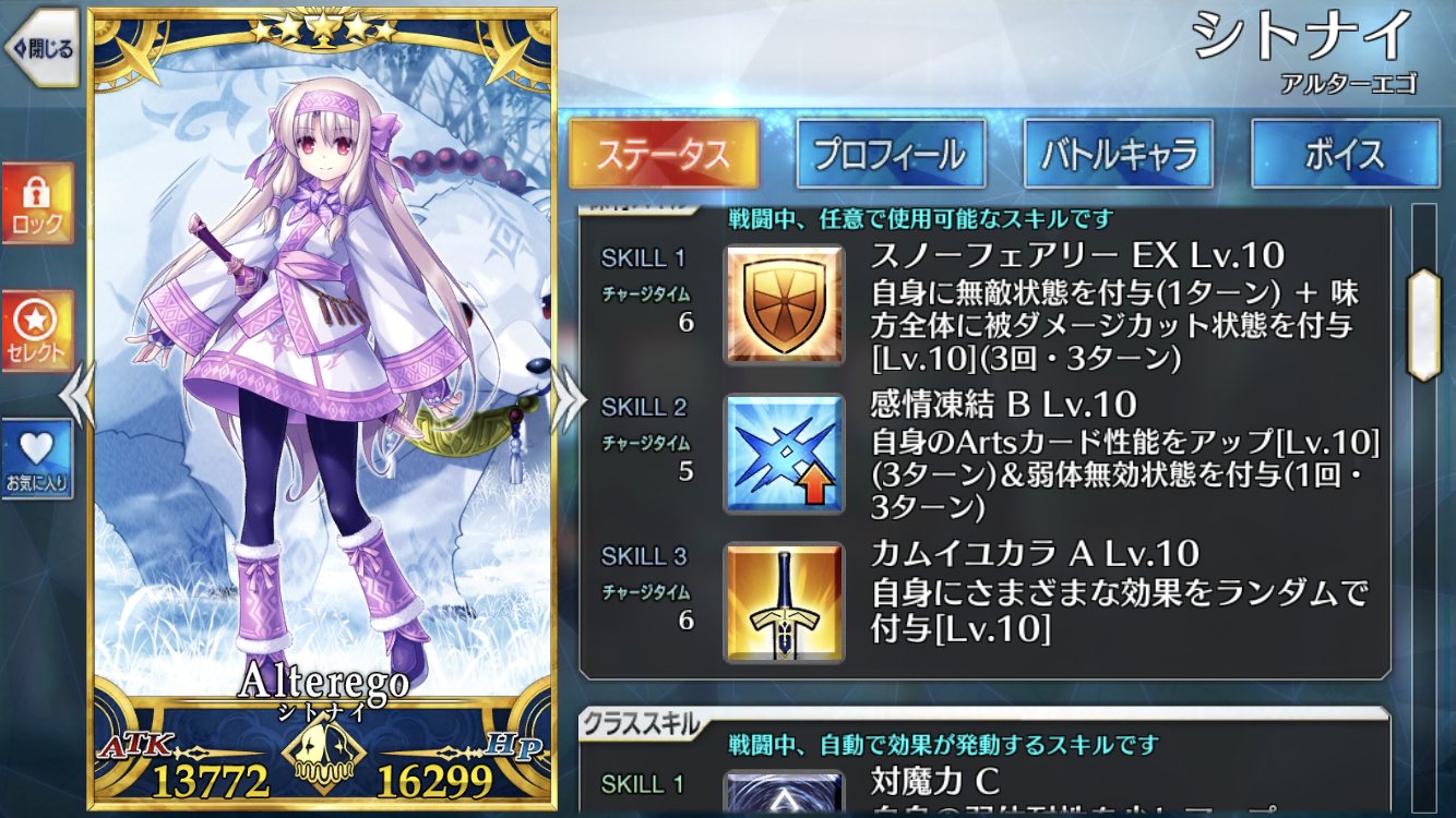 ちなみに「破滅願望」は幕間で強化可能 即死効果はそのままだけど追加でガッツが付くわ。このガッツは他のガッツ効果と重複可能で2個以上のガッツが同時に付けられるようになって一気に落ちづらくなったわねCTの短縮も見逃せないわ。まあ、幕間の条件は絆10と果てしなく遠いのだけど…