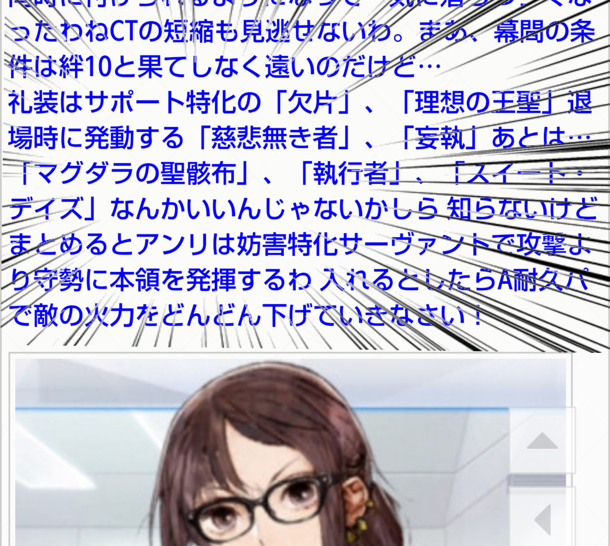 まとめるとアンリは妨害特化サーヴァントで攻撃より守勢に本領を発揮するわ 入れるとしたらA耐久パで敵の火力をどんどん下げていきなさい!>>922