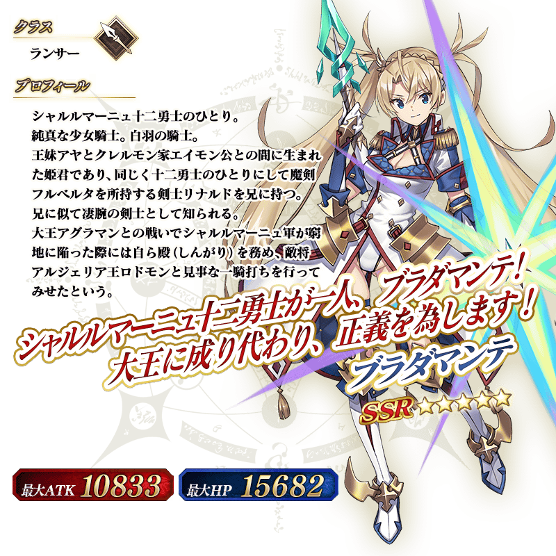 ブラダマンテはヘクトールさんの子孫の同じく12勇士のロジェロが恋人なんだ