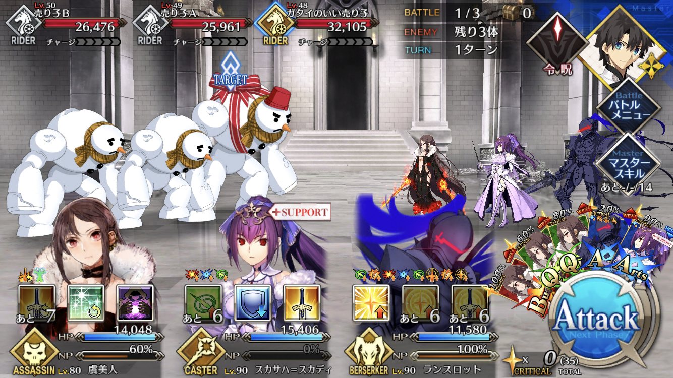 とにかくこの2騎とフレンドからジャンヌ辺りを借りればよほど運が悪くない限り、多分負けないわ あと余力があればロビンフッドと俵藤太もオススメよ!!>>922
