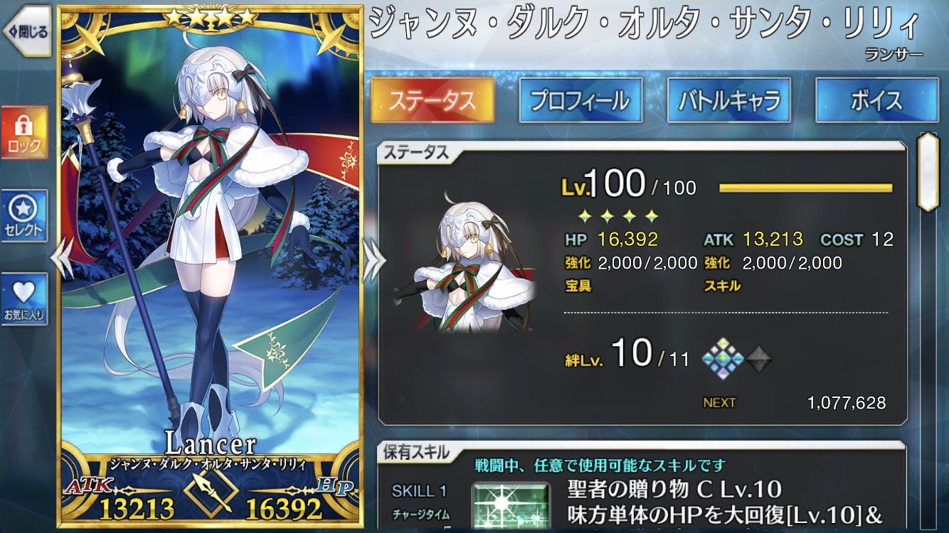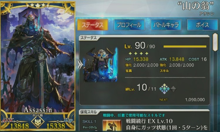 ダビデの方は意味不明な生存能力の高さと、全体に回避を付与できる「治癒の堅琴」。それとカリスマによる全体火力サポート、あと何気にATK値が全星3鯖の中でもトップクラスに高いのよ確か3位ね! 言い方が悪いかもだけど子ギルを器用貧乏とするならコイツは器用富豪よ!?