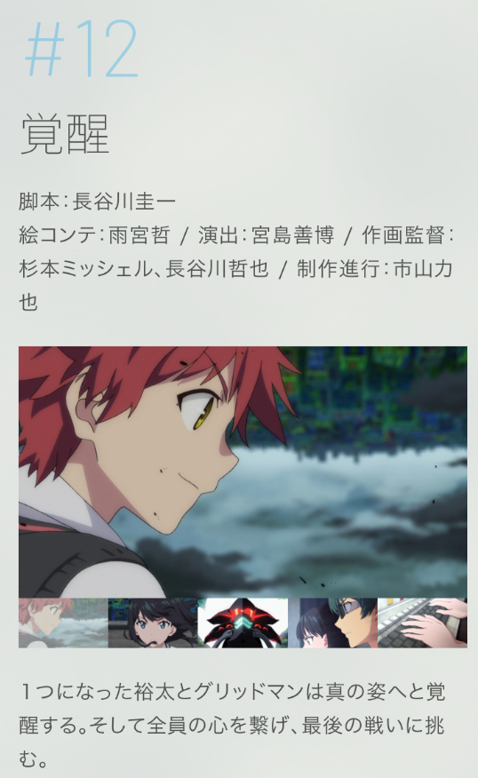 今まではサブタイが「・」で区切られていたのに最終回だけはそうなっていないのは、裕太とグリッドマンが本当の意味で一つになったって事かな?>>94