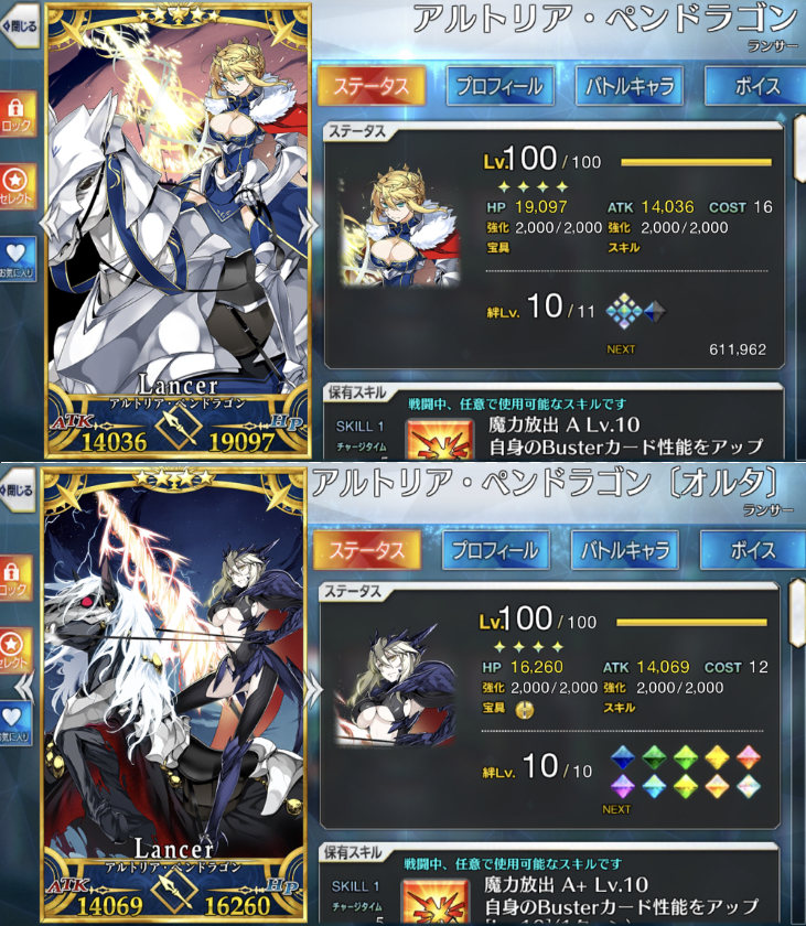 パッシブスキルは「対魔力A」「騎乗EX」「女神の神核EX」
