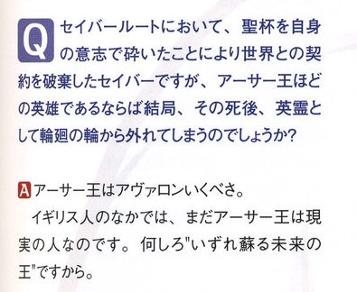アーサー王は本来死後アヴァロンに行くので座には行かないらしい。ラスエピがいい例だけど