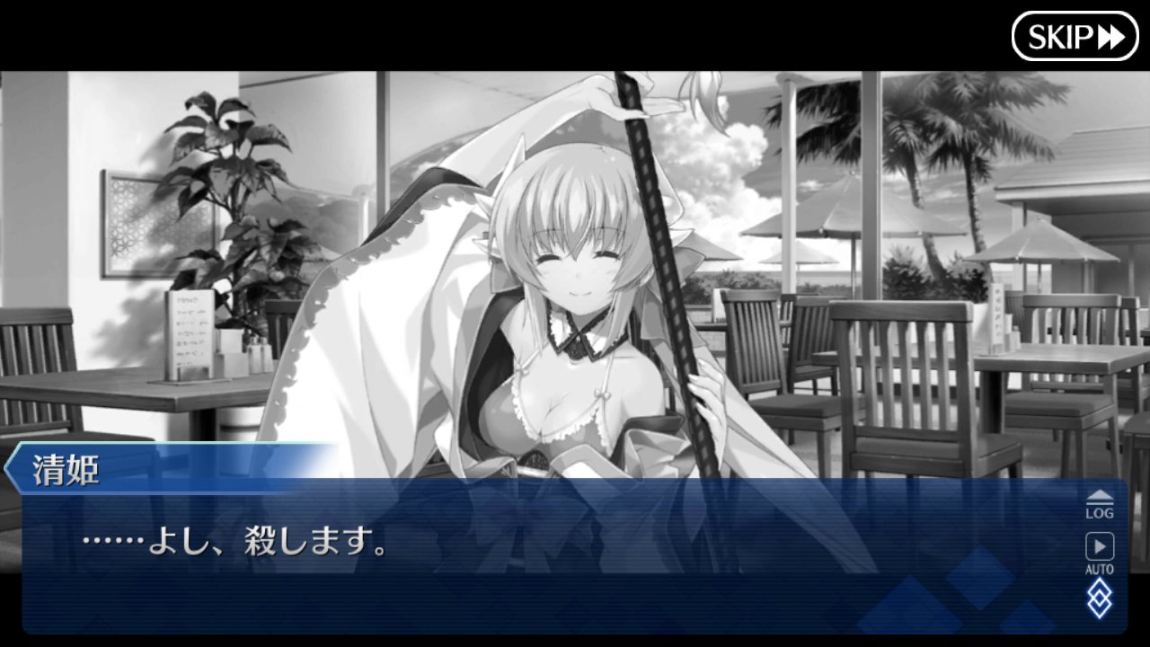 始皇帝陛下がそれなりに育ったので、今回は陛下を使った編成を紹介しよう。世間では朕玉玉が流行っているそうだが今回紹介するのは朕玉BB(水着)だ。BBが何を意味してるかは、ここでは深く考えてはいけないぞ!