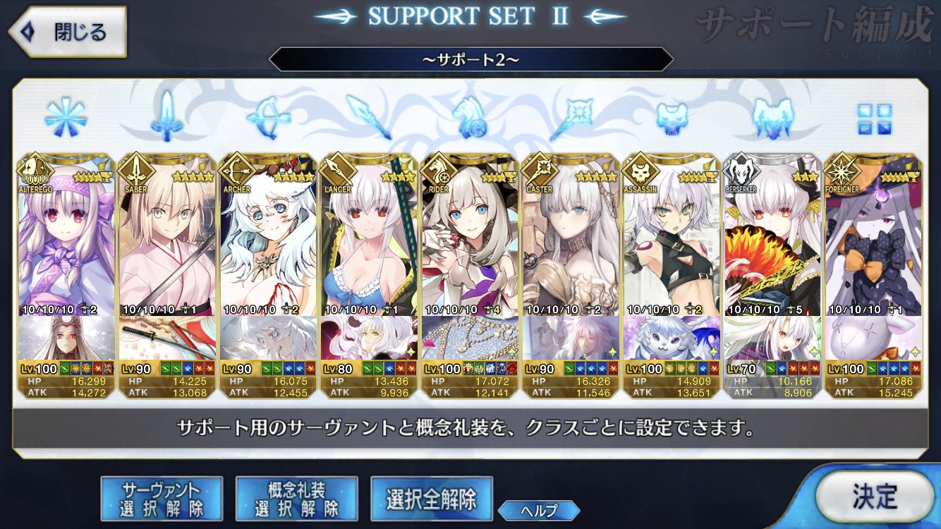 礼装はBBちゃんに欠片、陛下にペインティングサマーやニュービギニング、玉藻に欠片かNP補助系礼装がよい。マスターは安心と信頼のアトラス。