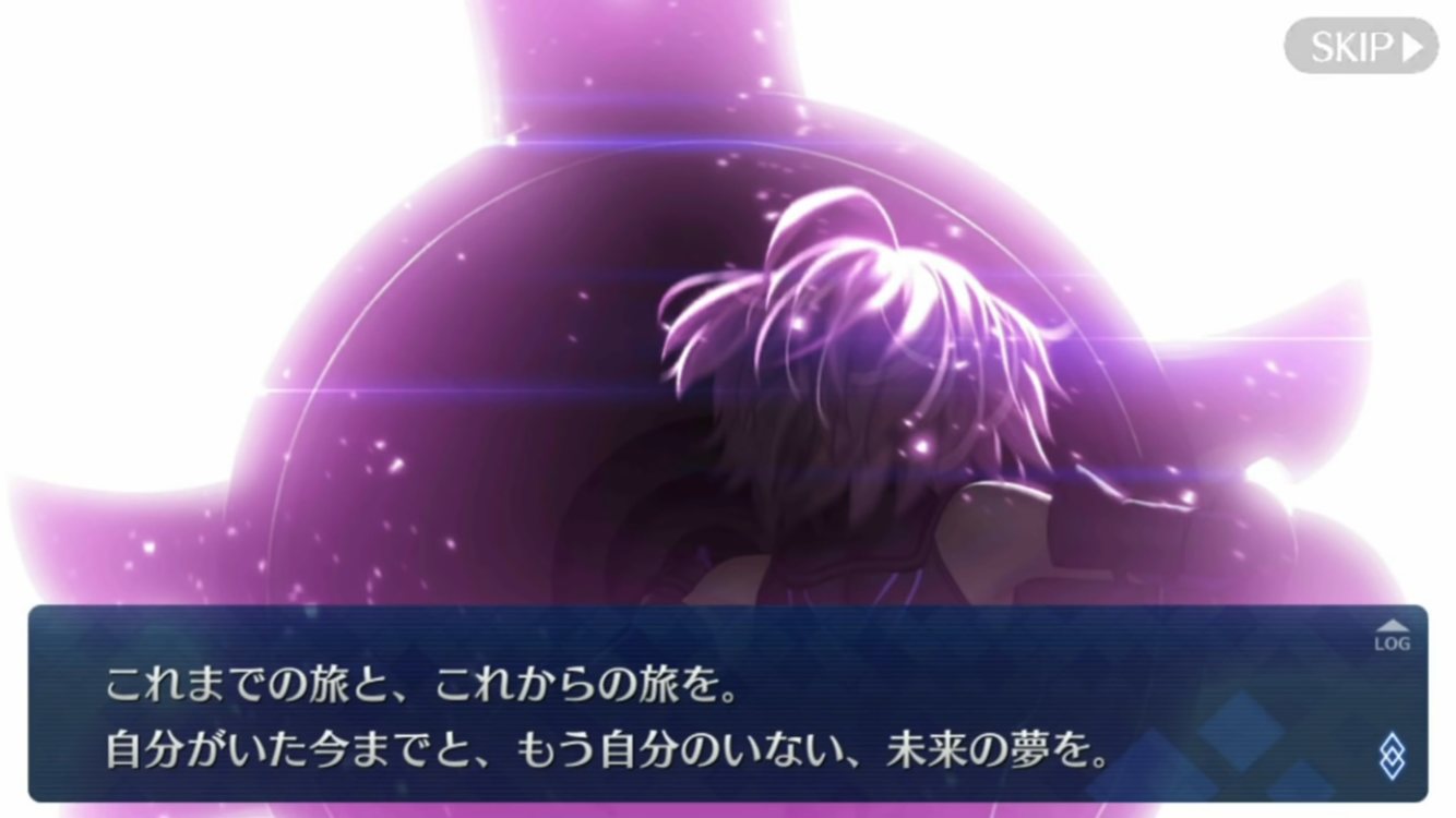 そこはあれか、ぐだは元々は普通に一般人生活をしてたっていうのとマシュは元々無菌室暮らしで終わりも分かってたっていう境遇の違いとかそこから生まれた思いの違いがあるんだろうな。まだ8人くらいレベル育成止まりだから