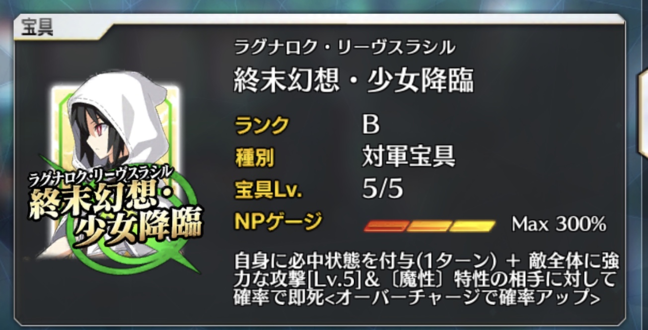 ランク:D 種別:対人宝具 レンジ:- 最大捕捉:1人