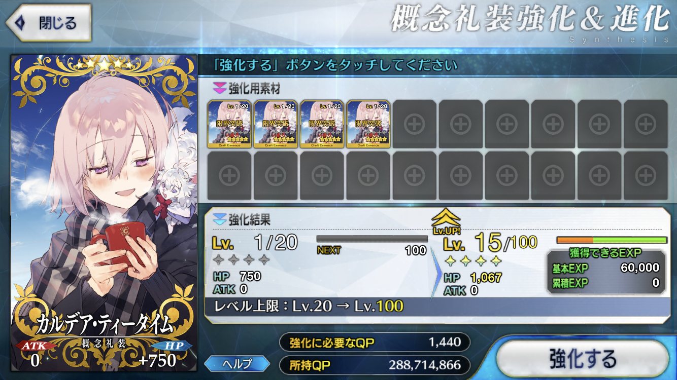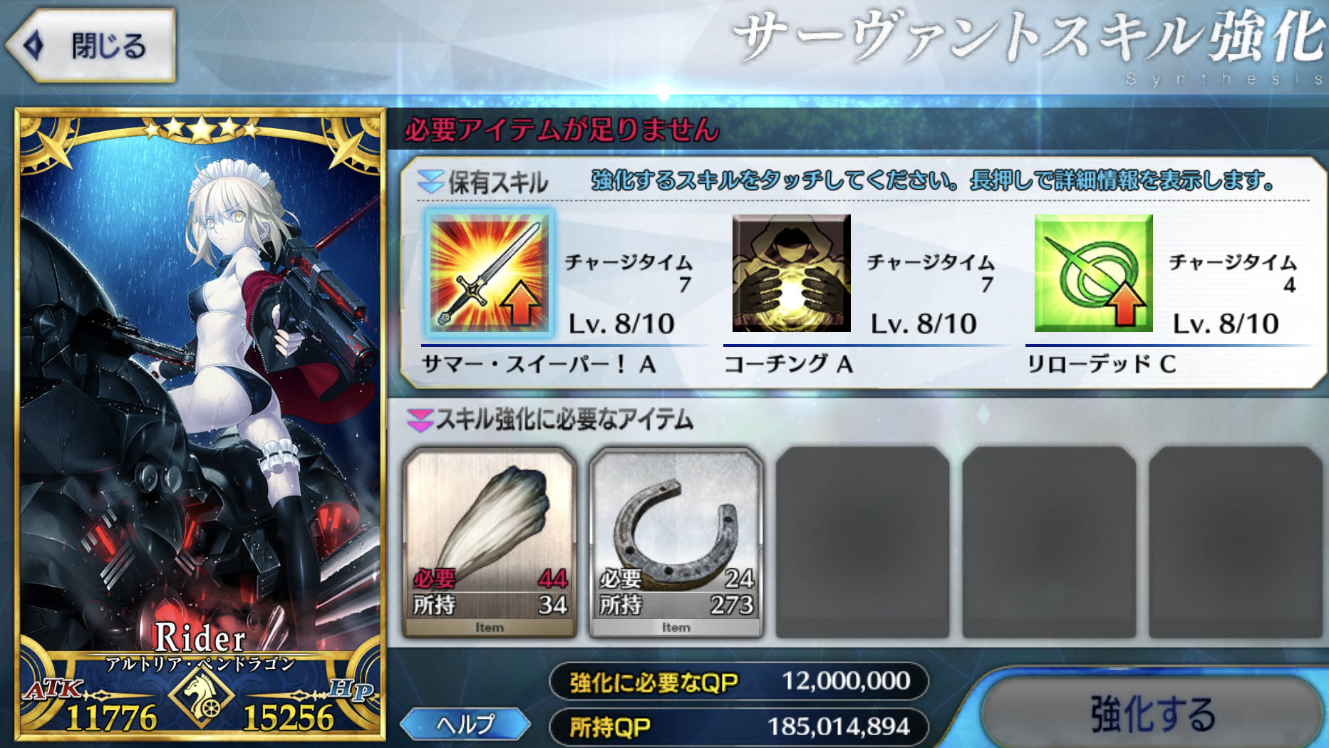 初めてQPがカンストしそう。でも素材なくてスキル上げ出来ない
