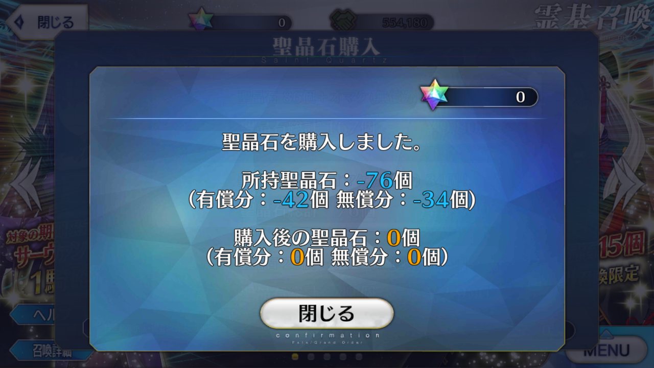 聖晶石を購入しパスワードを入力したあと画面の動きが止まったんだ