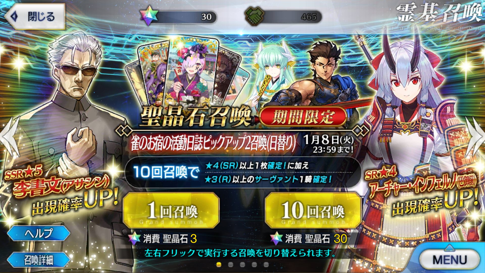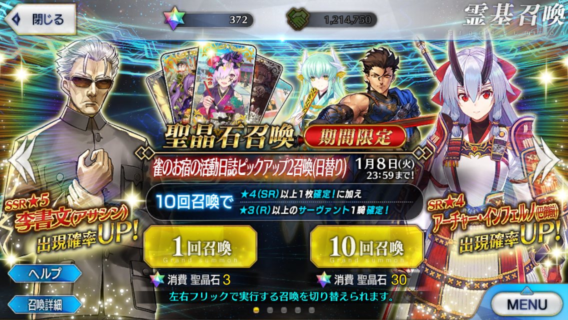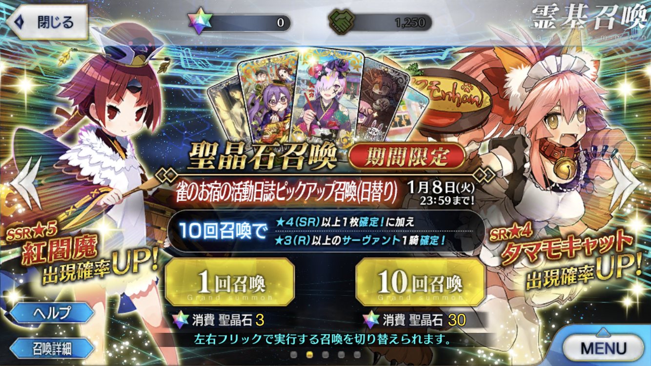 出来なければ別のおしとやか系サーヴァントに頼むしかないか……。欲しい鯖は一人に限定しなくちゃいけないんだ(無課金)