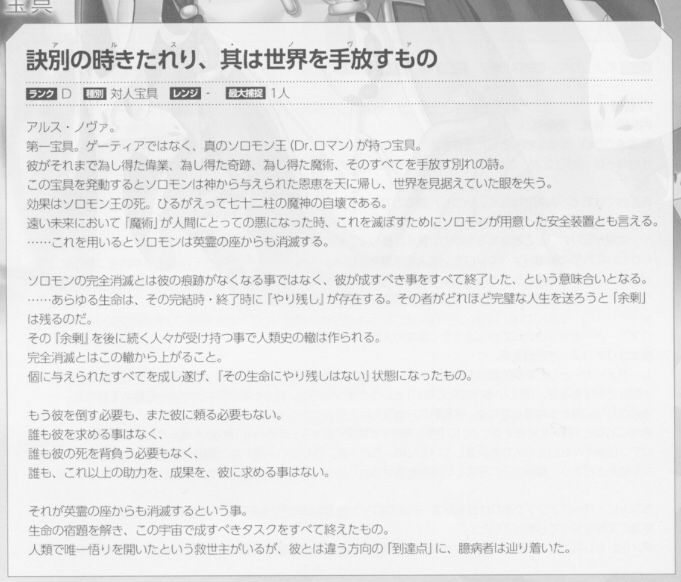 と合わせて整合性が取れるようになっている。なぜ、キリシュタリアの拠点がブリテンではなくギリシャなのか?を知りたいなら『ダニエル書』を読むといい。しかしたらインド異聞帯は時間の流れが他の世界と比べて非常に早いのかもしれない。