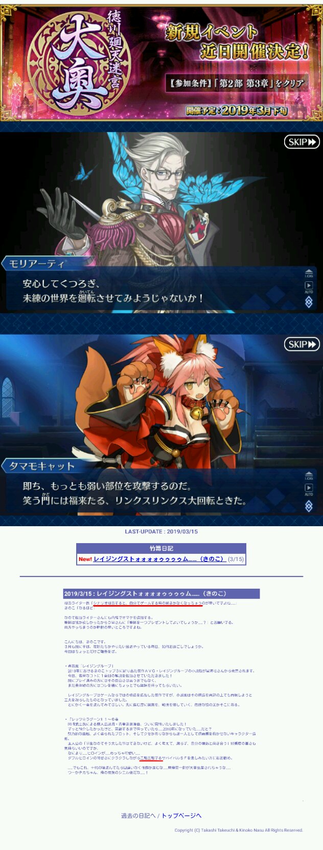 まぁ持ってないんですけどねしかし本当に4章は何時くるのだろう、4月下旬はもうGWイベ入るだろうし来るなら大奥直後だろうけどそこで来なかったら5月以降になりそうだ......