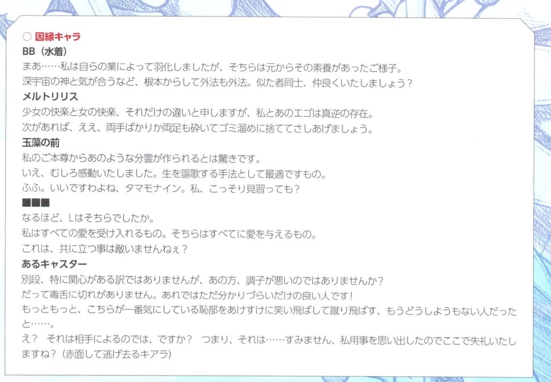 もっと1のサルベージされる描写込みで、オルガマリーが異星の巫女であることの示唆になる可能性