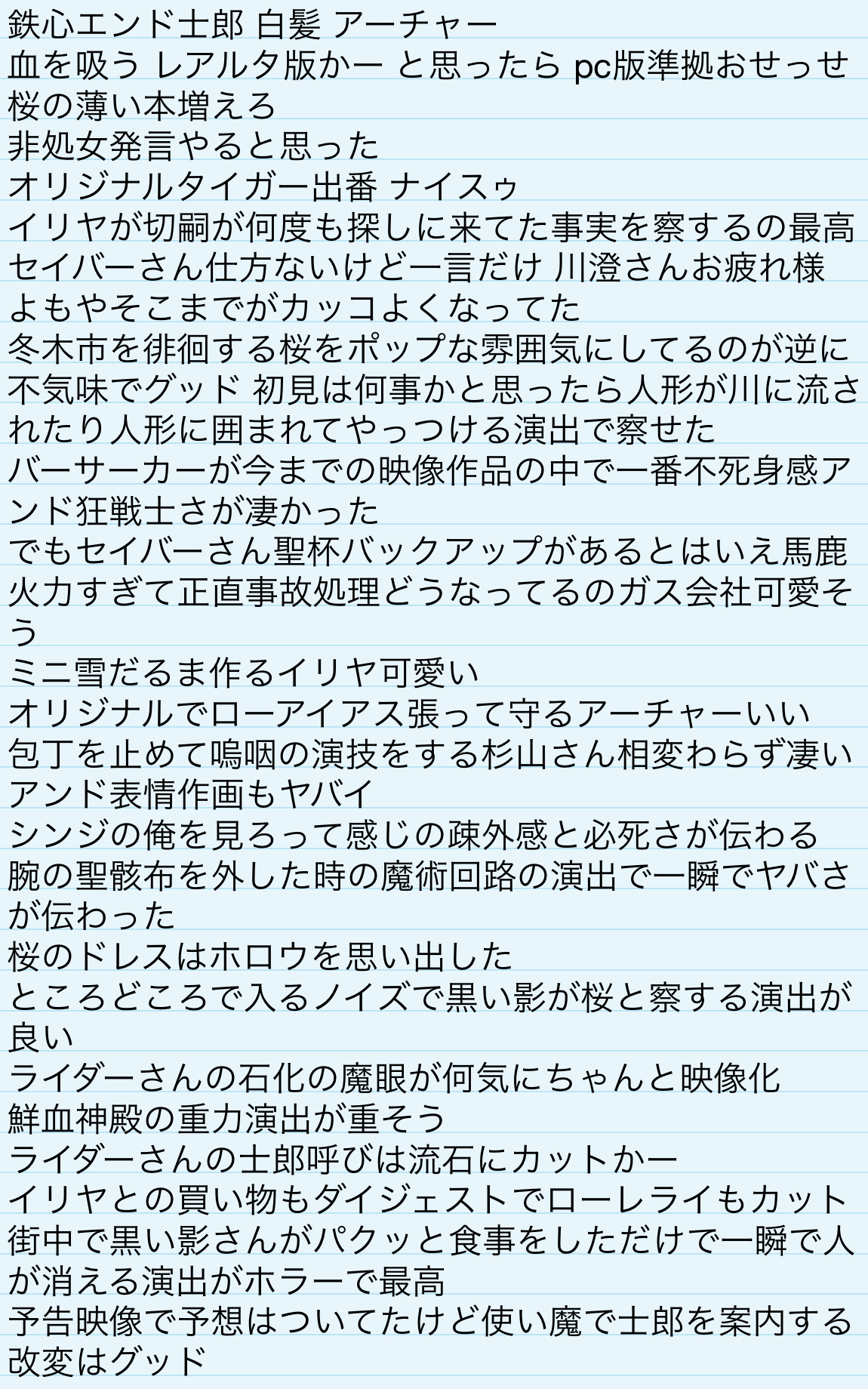 それでもHFがここまで物凄い映像化されるなんて昔の状況考えたら思いもしなかったことだから本当感謝ですわ