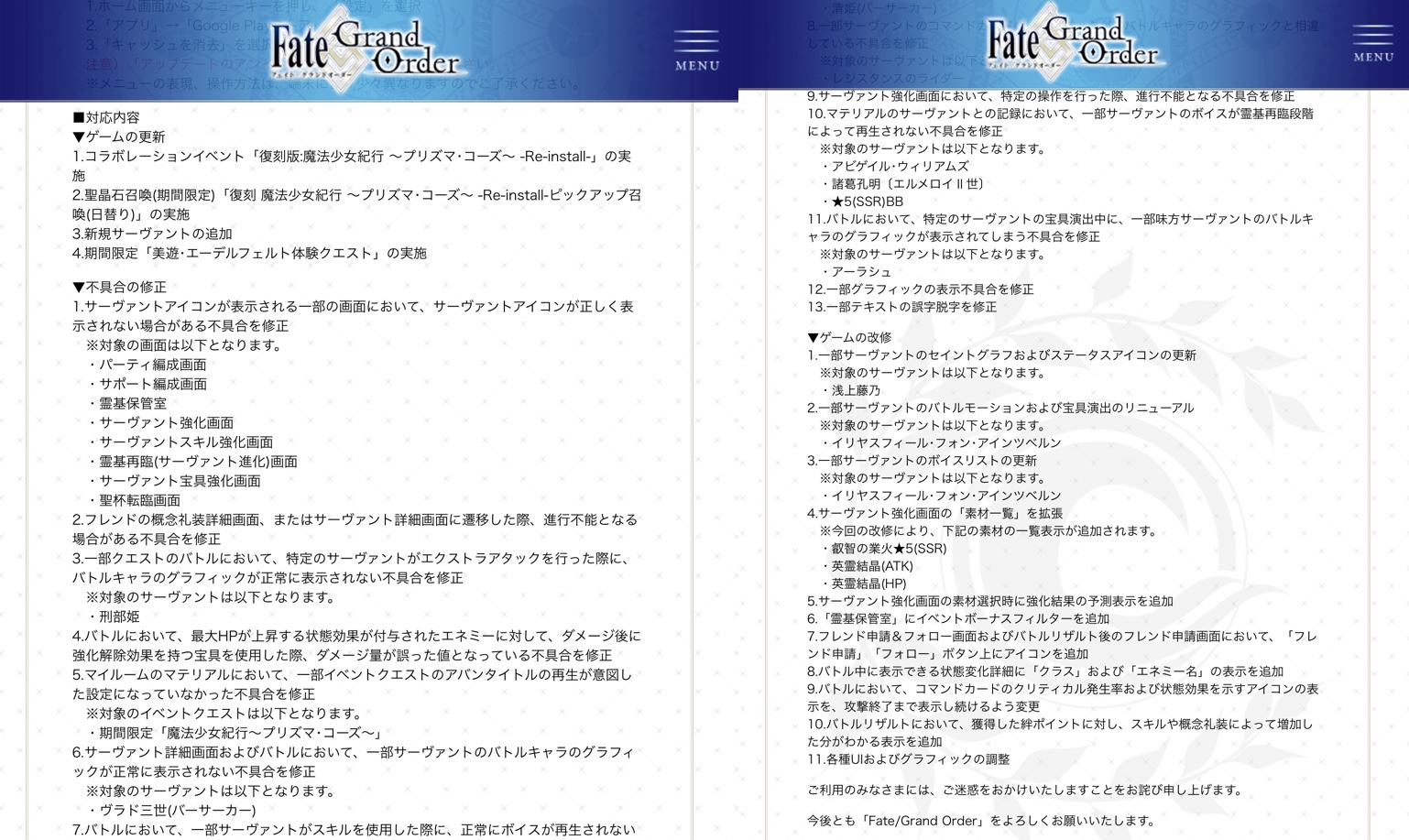 最終再臨や霊衣解放のイラスト、最新シナリオ内の画像や話題などは配信、実装から2週間は控えてください。