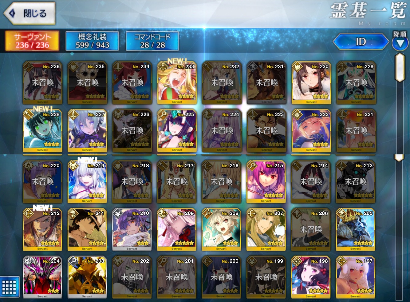 鯖今どれくらいいるか被りなしで数えてみたら130か・・現時点でサーヴァント総数231人だから全員持ってる人は、プレボ/礼装所持枠/礼装保管庫合わせて235枠以上は空き作っておかないといけないんやなー