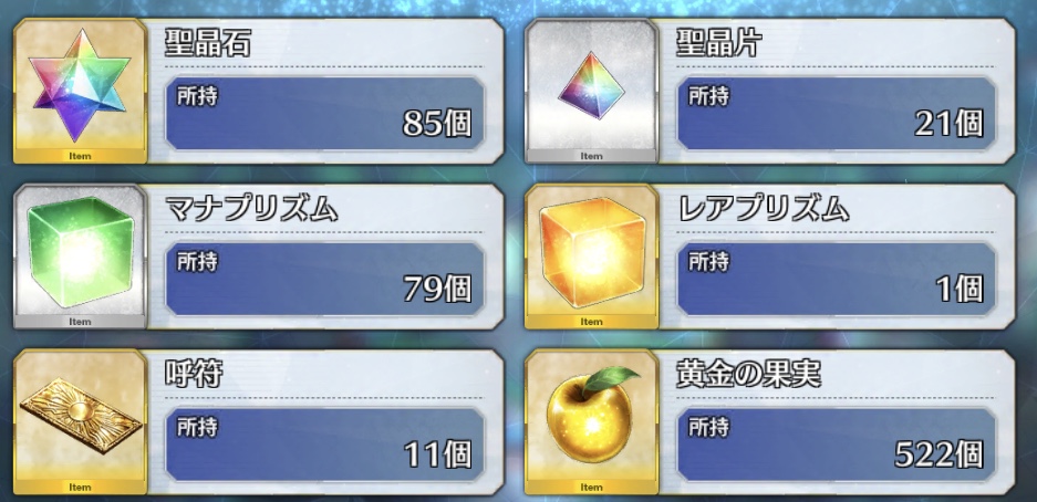 今回改めて受け取ることで2019年版のマテリアルに別枠で登録される