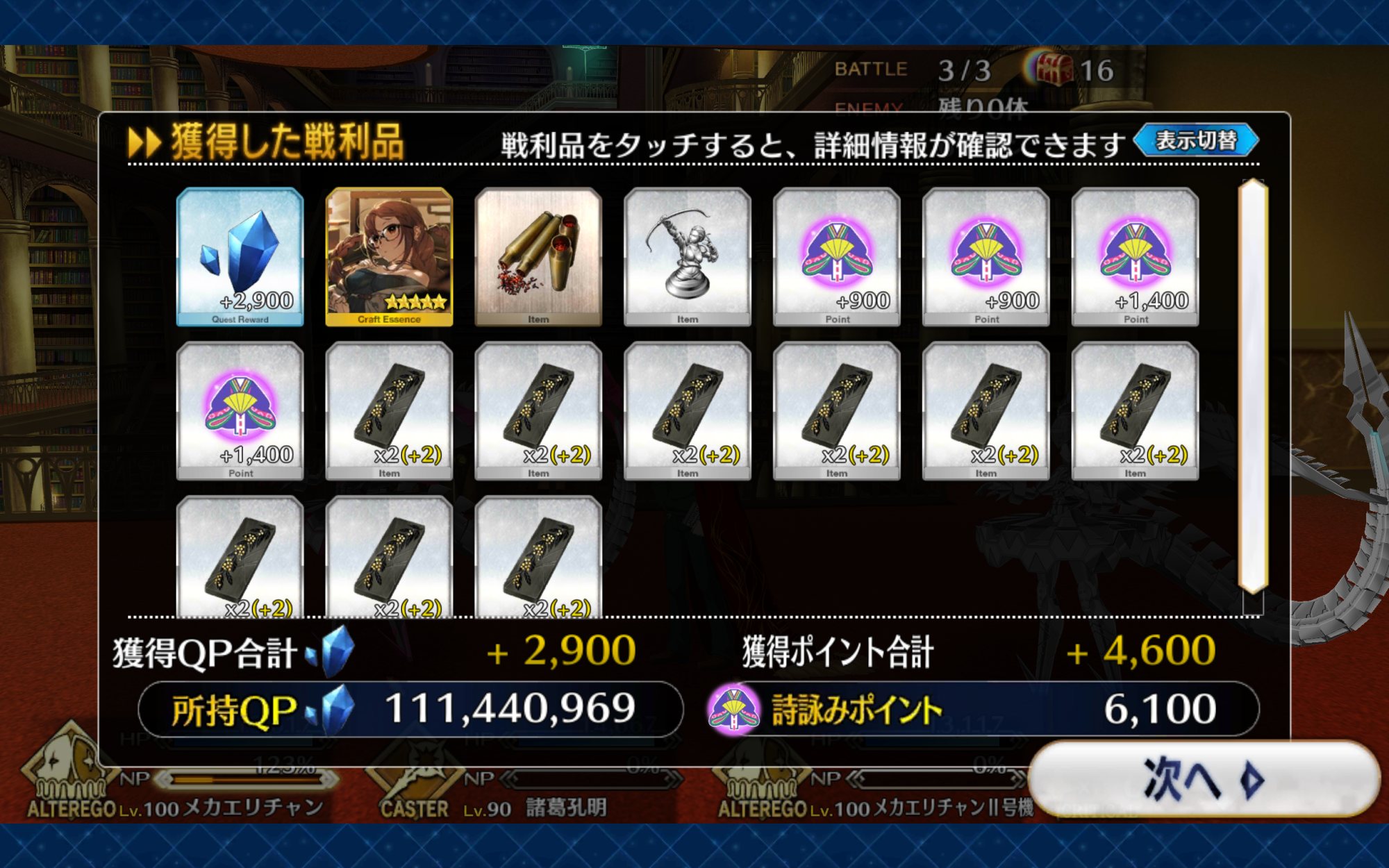 >また、サーヴァントからもらった「バレンタインのプレゼント」の概念礼装を装備することでも、詩詠みポイントのドロップ獲得量がアップします!>>17