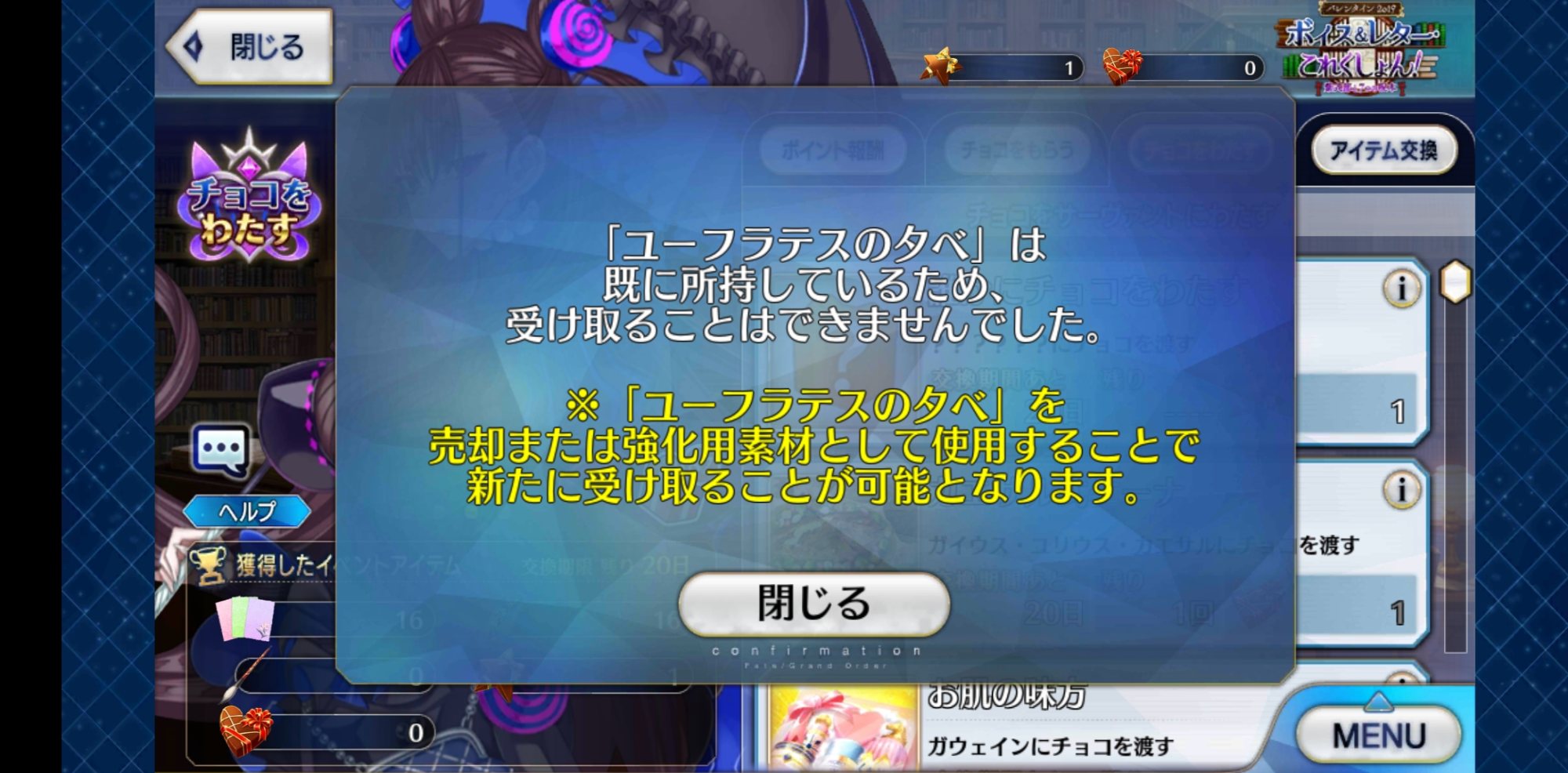 もう一人のぼく「倉庫と礼装所持数を圧迫してるチョコを整理するええ機会やで?」