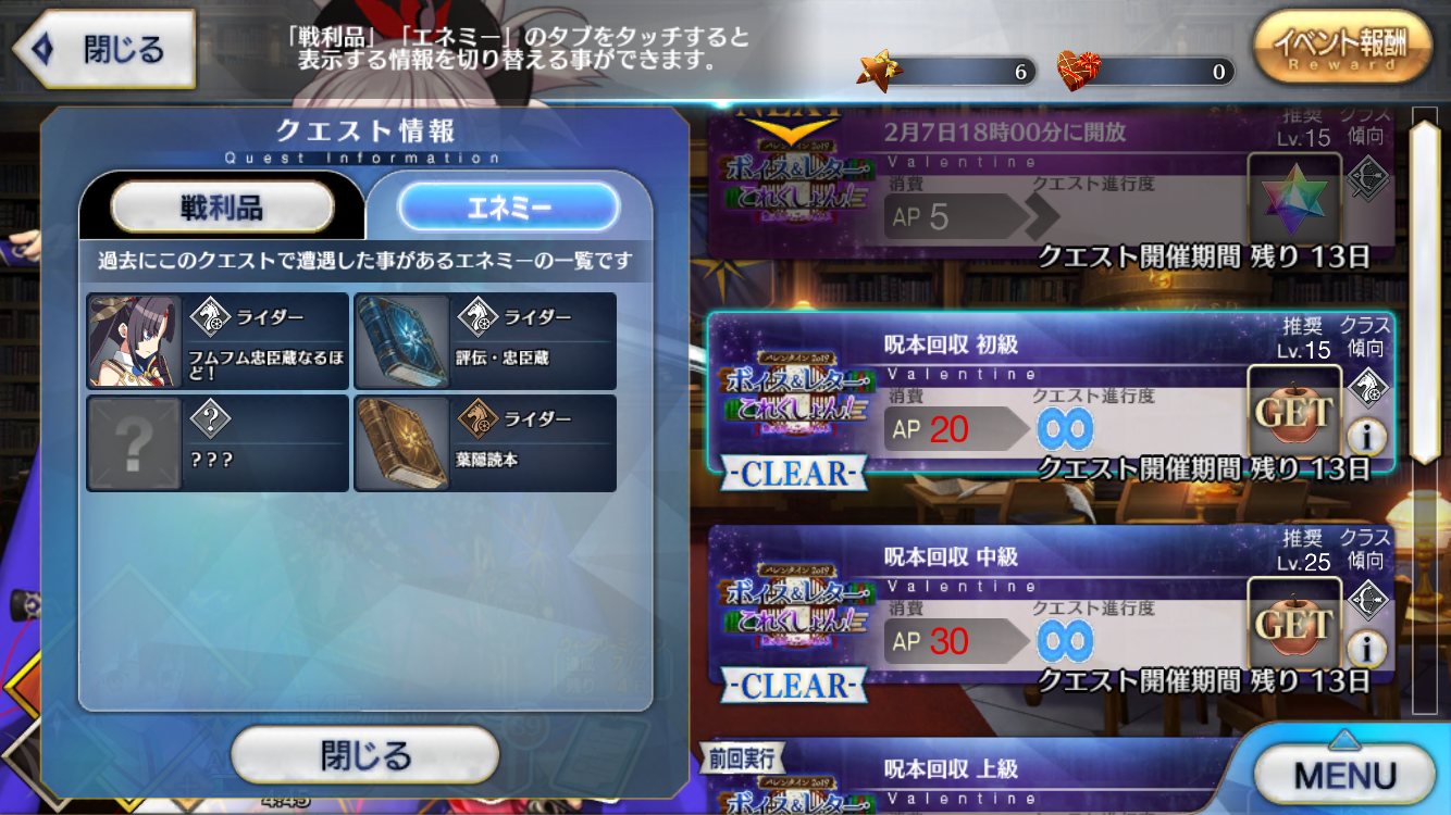 「バレンタイン2019 ボイス&レター・これくしょん!~紫式部と7つの呪本~」攻略・雑談スレ1