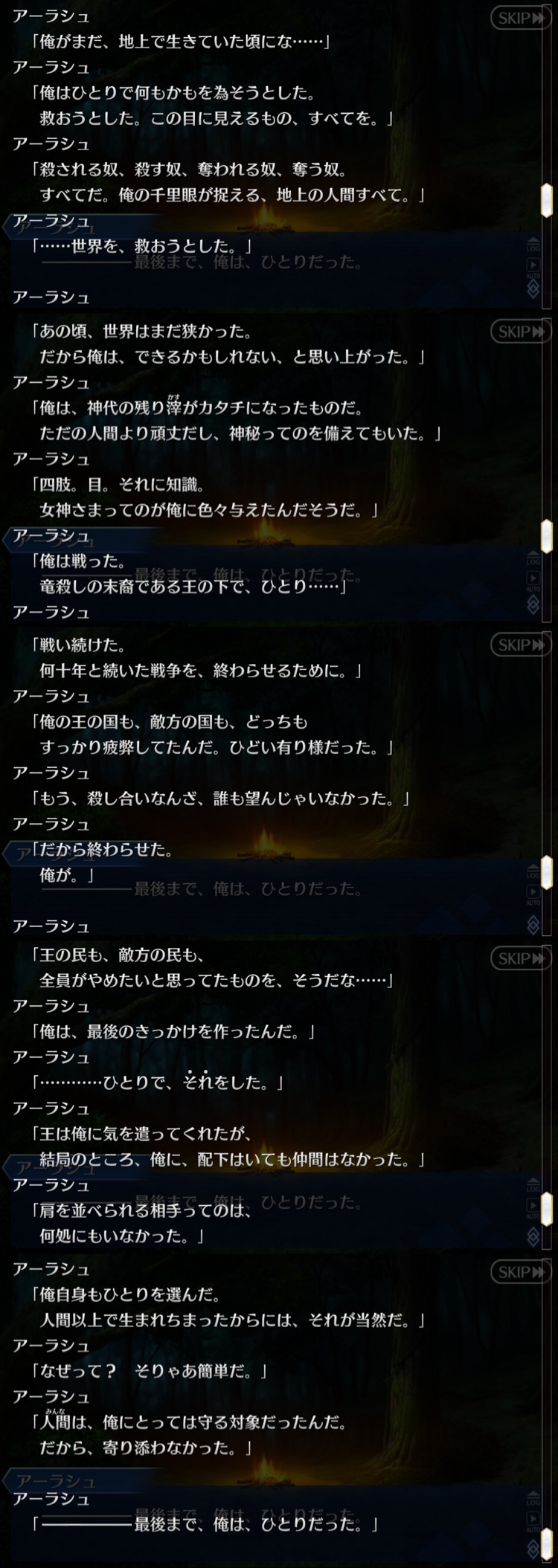逆にアサシンたからと邪悪な行為に手を出そうとしたとかは、背信も危ぶまれるほどに高潔な人間である。(マテ本参照)