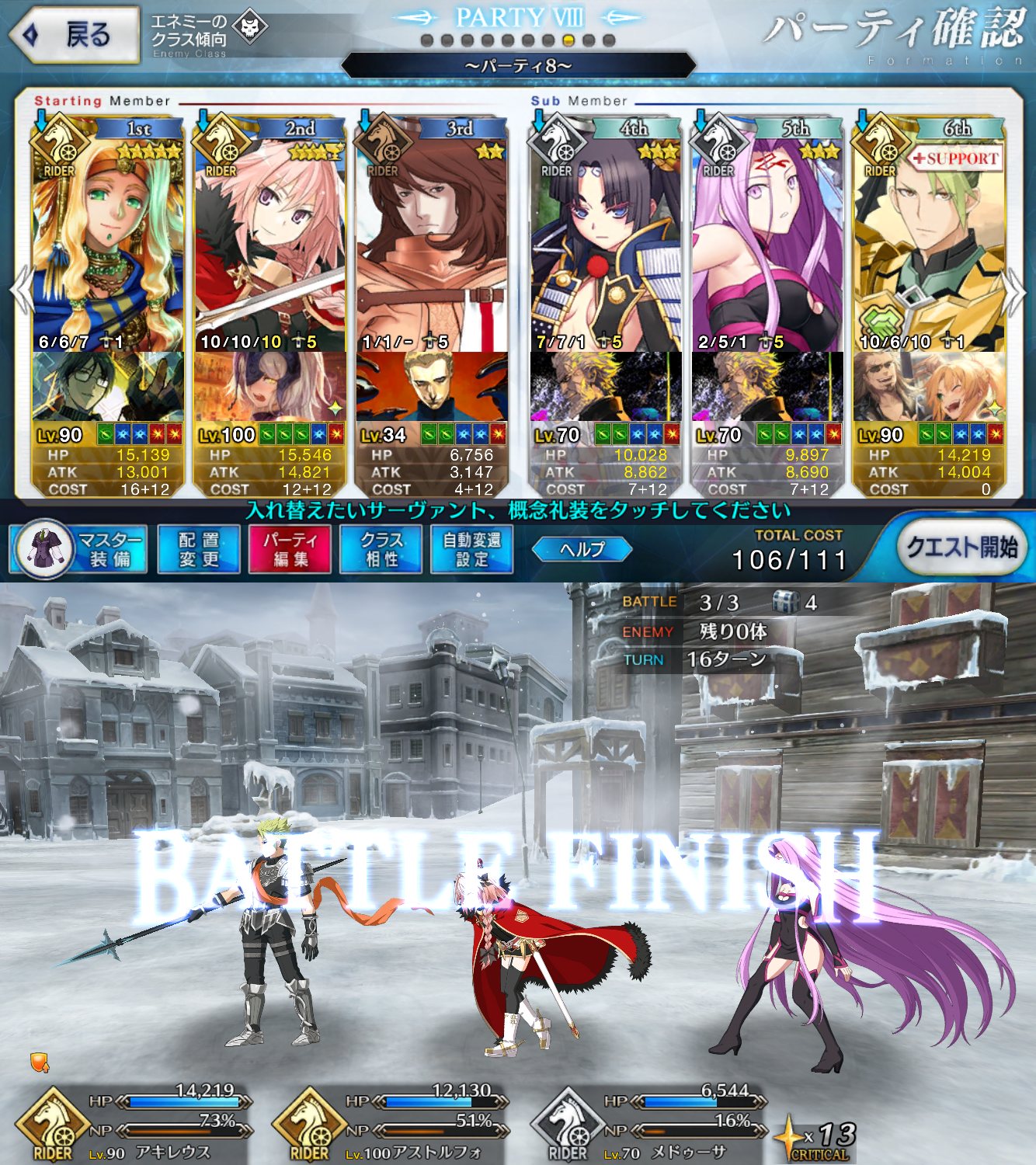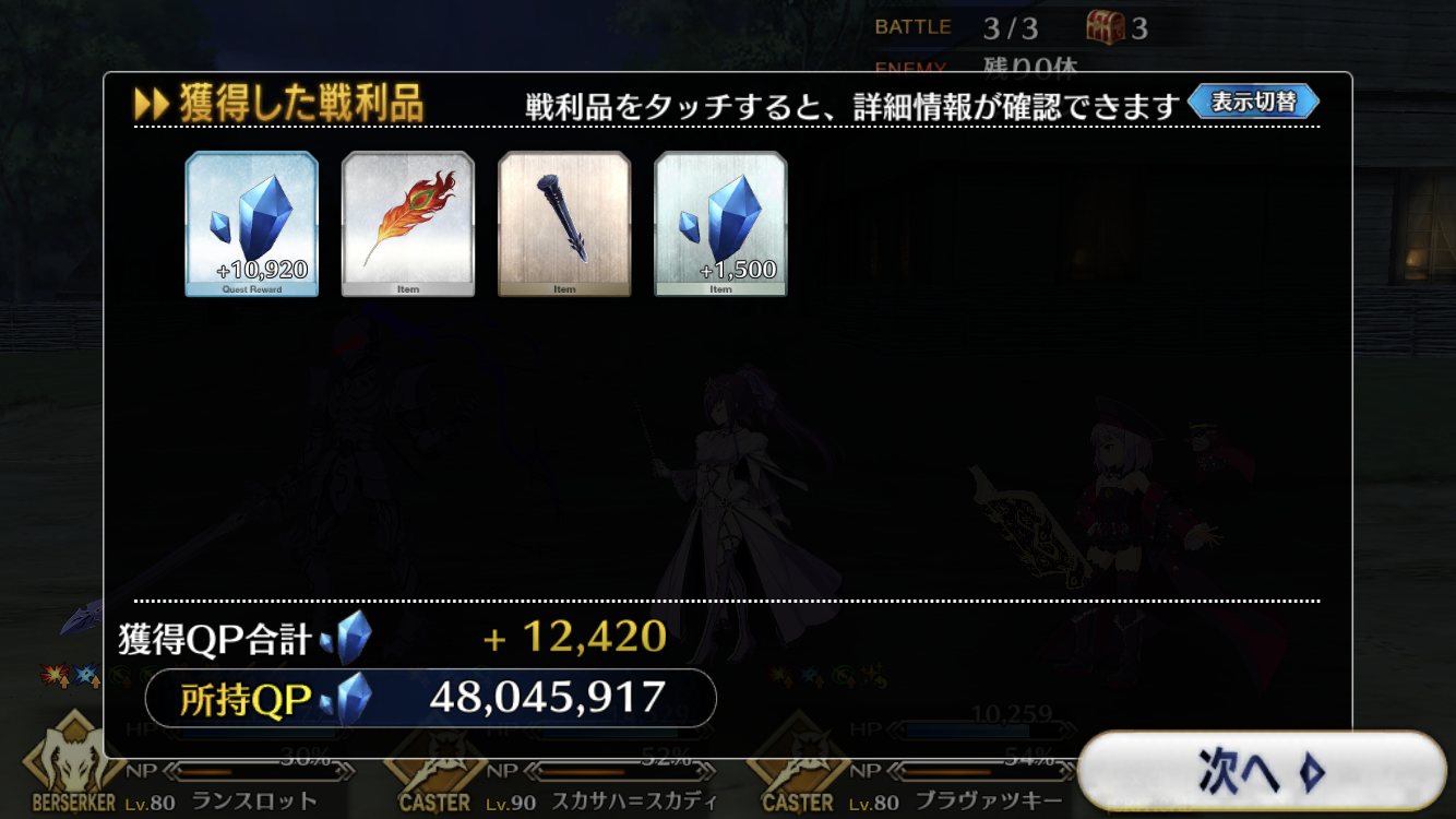 投げ変化とか強すぎじゃない?3連続持ってない鯖……周回しよ