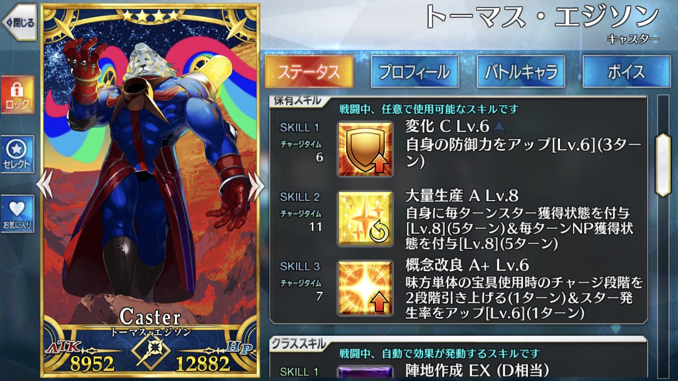 味方宝具のオーバーチャージ上乗せしたり、スターを供給したりで、徹底的なサポート型にしていくんだな星を出し防御バフを投げctを削減し宝具OCを二段階あげながら立っているだけでNPを貯め相手をデバフ漬けにする。