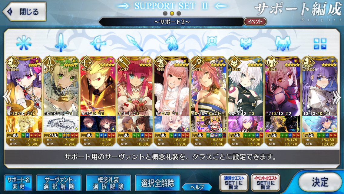 さて、イベントでは誰をサポートに設定するかと並べてみたが……