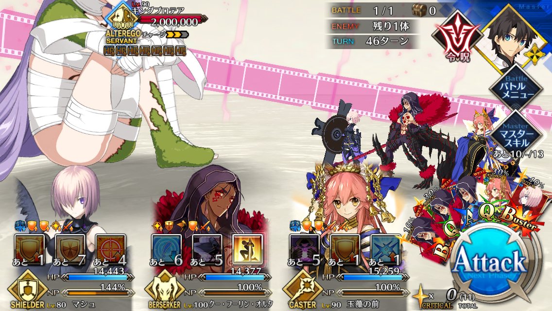 ぷにぷにしたいプロテアちゃん1T~2T撃破チャレンジしたけど宝具レベルとか足りなくて結局普通に耐久→オダチェンアタッカーで撃破しちゃった