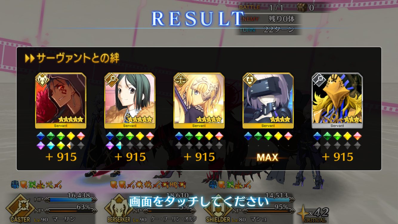 マジで際限なく膨れ上がるのか、やばーいマシュジャンデルセンとかいう由緒ある耐久編成を使って、ある程度ターン経ってから朕の擬似単騎でクリア