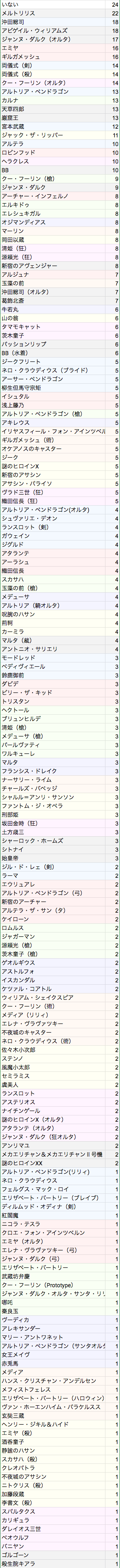自分のカルデアで、クラス名で呼んだら来てくれそうなサーヴァント(重複不可)