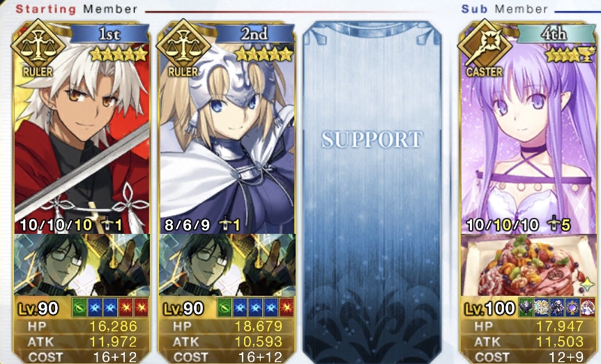 だいたいスタメンに天草ジャンヌマーリンで、四番手にメリィをスタンバイさせると対複数戦では安定して削りきれるね。