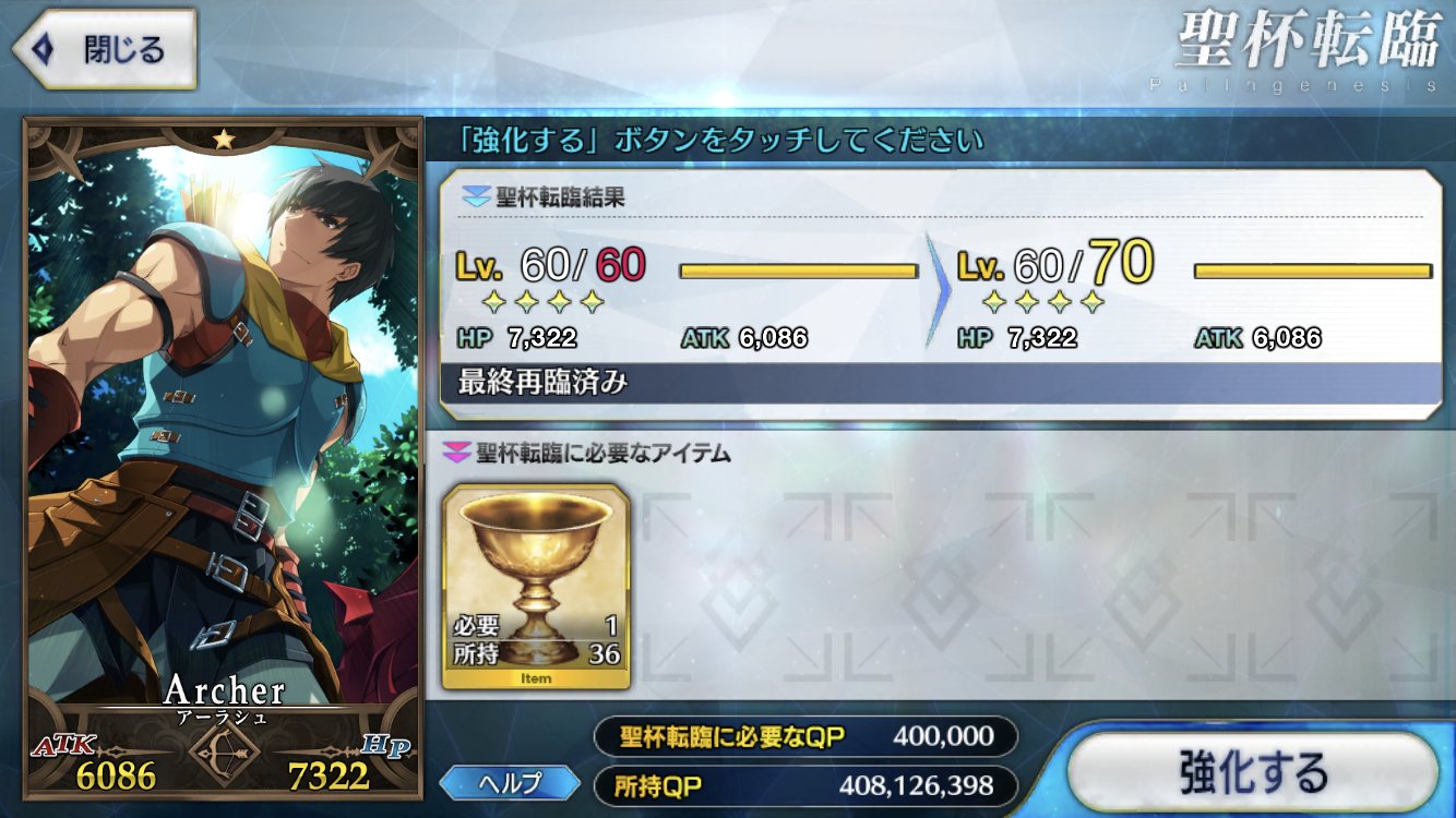 あと今回は関係ないけど、星1鯖は一個目の聖杯で上限が10上がる。>>946