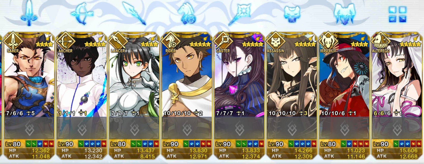 あとセイバーもアーチャーもランサーもアサシンもバーサーカーもエクストラクラスも虞美人だよ