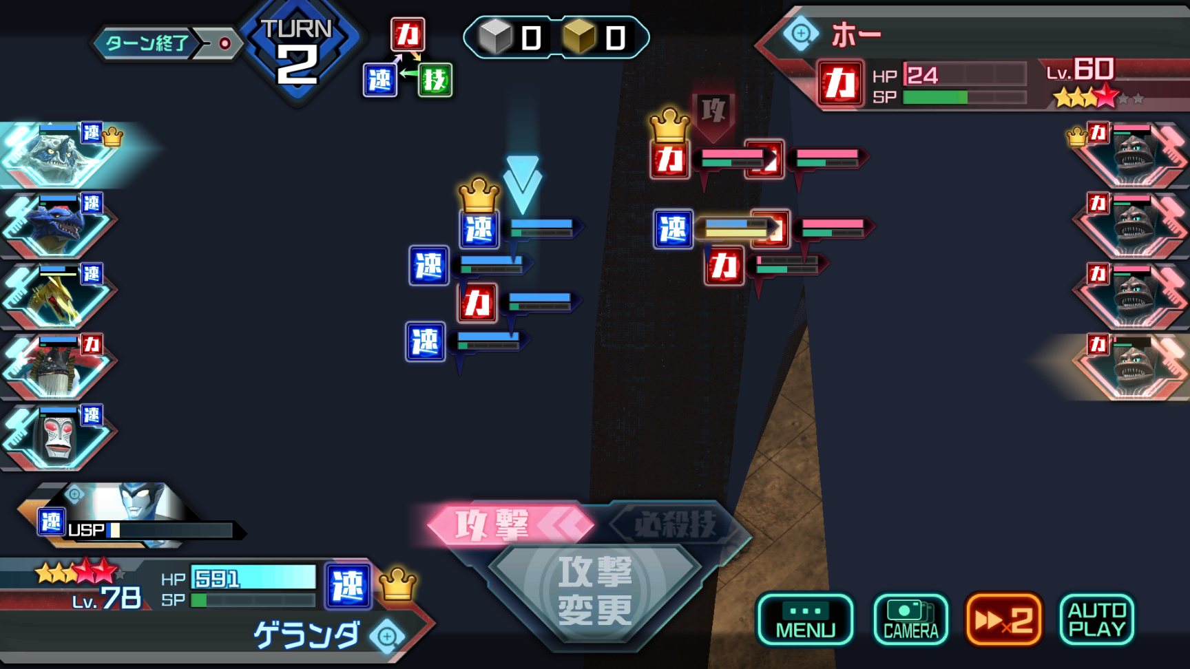 →ビクトリーがサドラシザーズで跳ね上げ、光線が側面に命中して左手大破