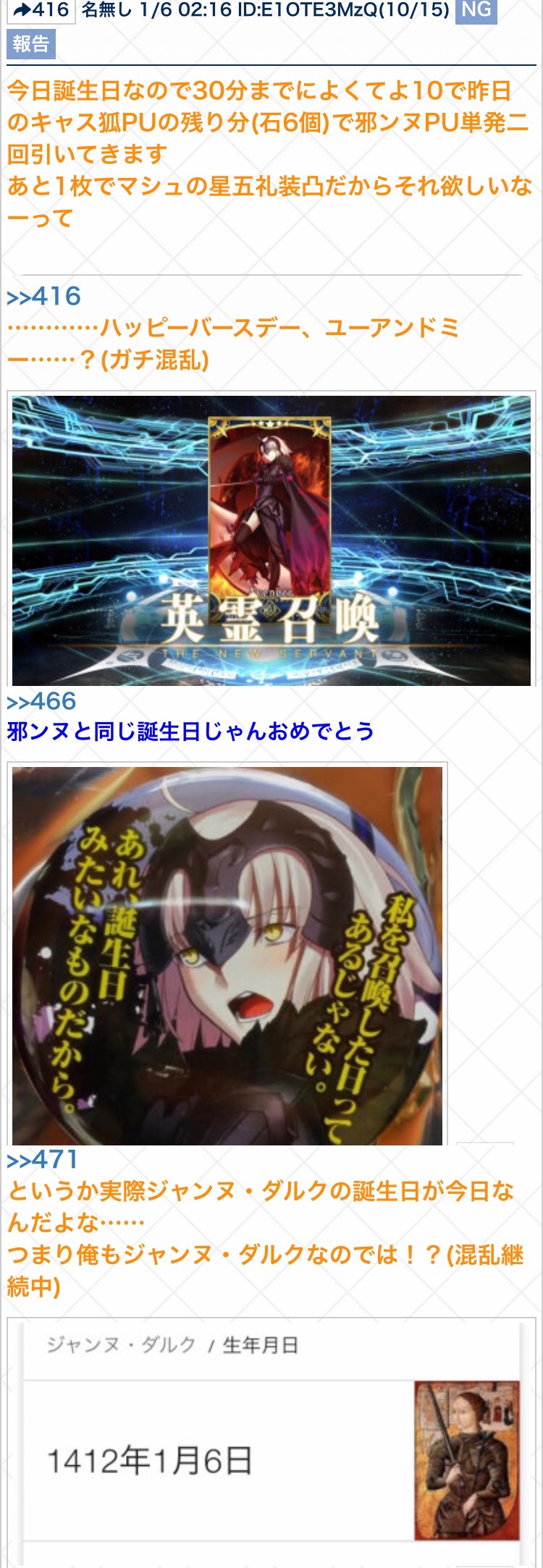 ネタバレ、最終再臨バレに関する話題で書き込むのが躊躇われる場合は下のスレへ。