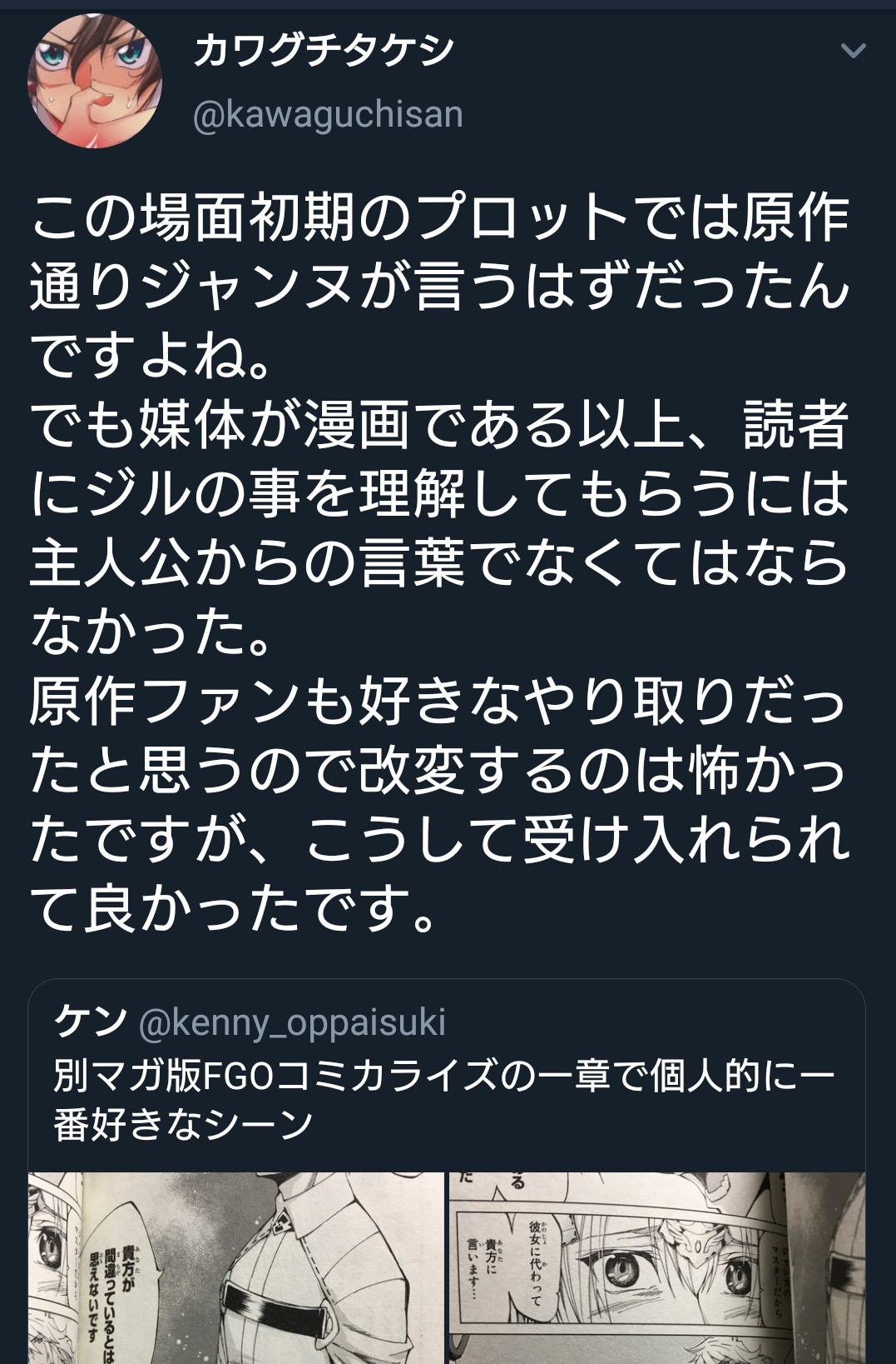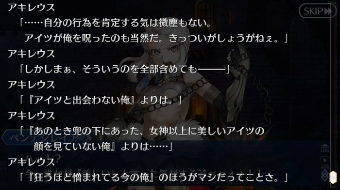マシュを気遣って「痛いの嫌だから怪我するような無茶はしないよ(実際は必要ならやる気」という嘘をついた藤丸くんに対してマシュがいなくなったのを見計らって、「嘘をついた想い人を焼き殺した女ですので、私には嘘をつかないでくださいね♥️」と笑顔で釘を指した清姫は良かった>>914