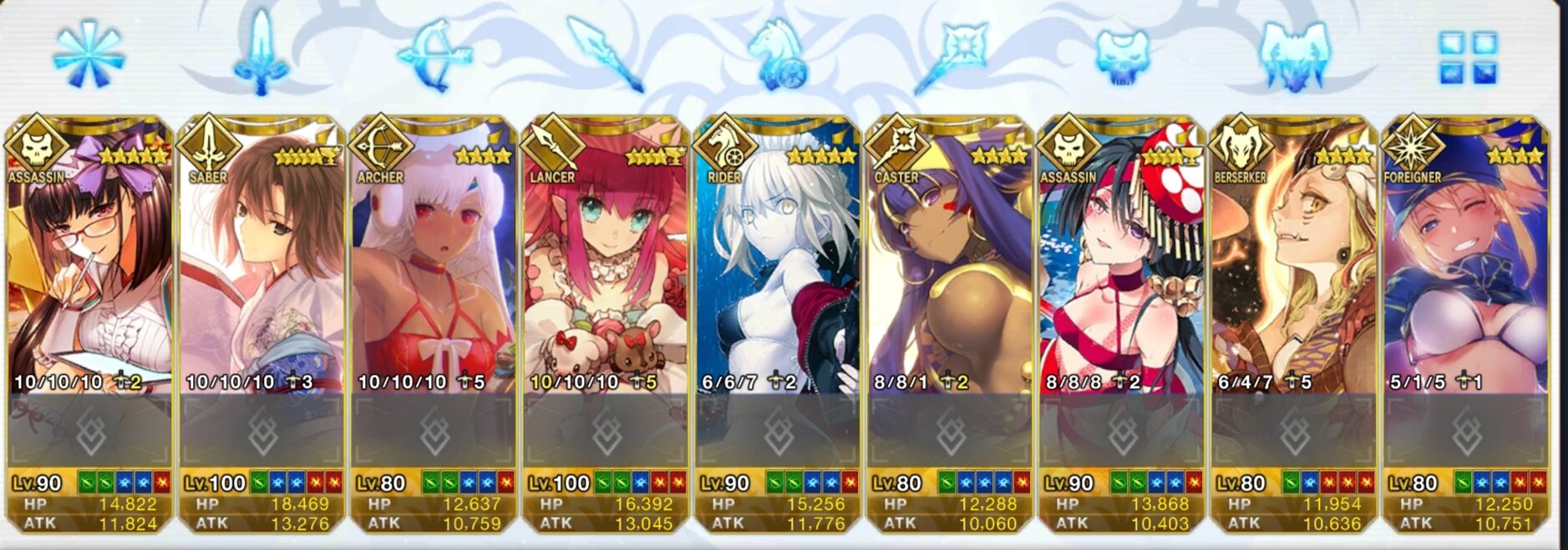 はいはい閉幕閉幕というか数が多いと聖杯鯖だけのスクショ撮るのが地味にめんどくさい