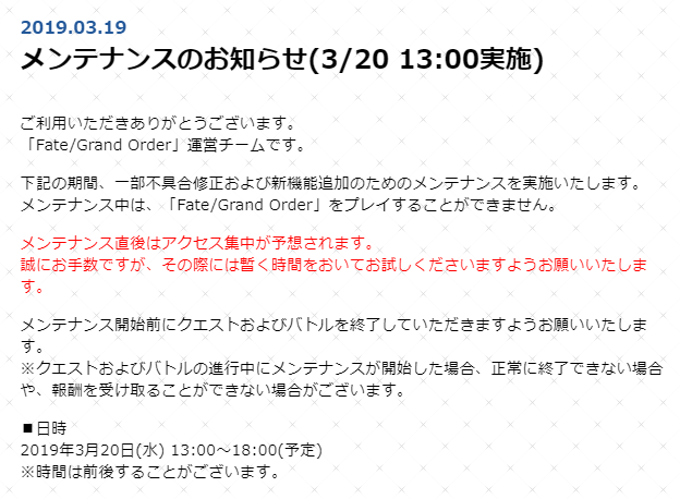 リーク・解析情報等は禁止です!荒らし・誹謗中傷等は無視し、報告・NGにて対応してください。煽りや荒らしは完全無視が最も効果的です。反応するあなたも同類です。他所への内輪ネタの持ち出しは控えましょう。二次創作物の無断転載禁止、公式関係者のイラストや転載が許可されているものに関しては必ずリンク先を併記してください。最終再臨や霊衣解放のイラスト、最新シナリオ内の画像や話題などは配信、実装から2週間は控えてください。